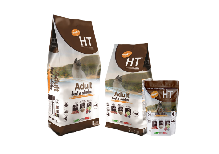 I Prodotti HT sono una gamma completa di alimenti con formule all’avanguardia, studiate per rispondere alle esigenze dei vostri gatti nelle diverse fasi della loro vita. Per ogni età, taglia e condizione fisica avrete una formula che garantisce un nutrimento completo, gustoso e salutare. I prodotti HT sono capaci di fornire con la massima appetibilità energia altamente metabolizzante, favorendo un’ottimale crescita scheletrico/muscolare e garantendo un perfetto stato di salute dei vostri amici a quattro zampe. HT è formulato con almeno il 70% di proteine di origine animale, il 20% di proteine di origine vegetale provenienti da prodotti uso umano ed il 10% da frutta, sali minerali ed integrazioni vitaminiche secondo una dieta di tipo ancestrale.